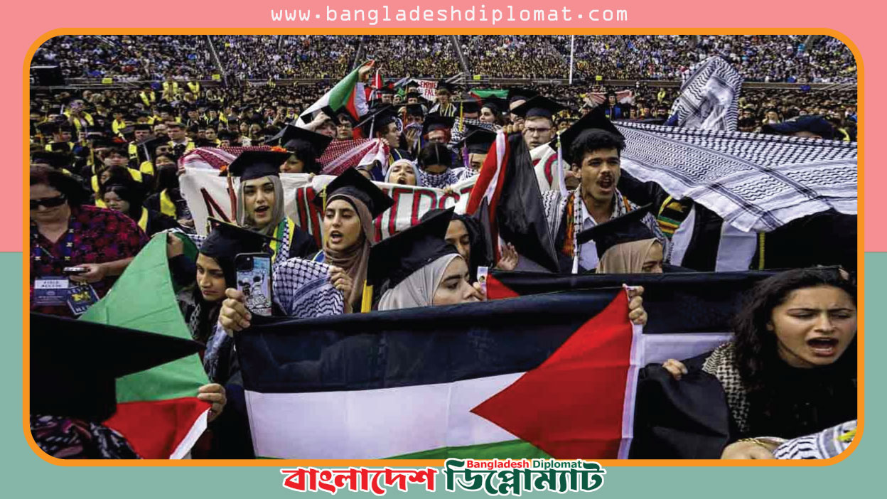 অবরুদ্ধ গাজা উপত্যকায় ইসরায়েলি যুদ্ধের অবসান ও মার্কিন সমর্থন প্রত্যাহারের দাবিতে কয়েক সপ্তাহ ধরে চলা ফিলিস্তিনপন্থী শিক্ষার্থীদের বিক্ষোভের জেরে স্নাতক