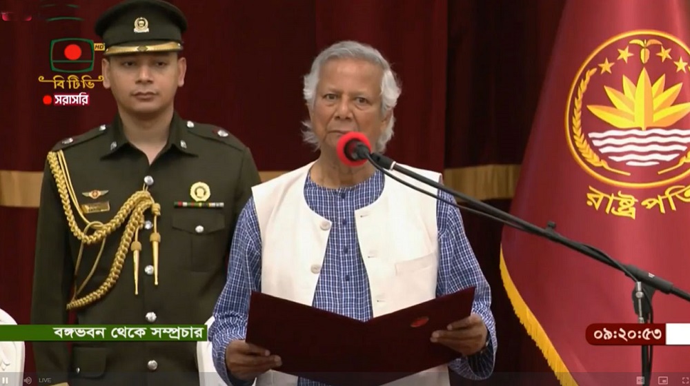 ড. ইউনূসের নেতৃত্বে অন্তর্বর্তীকালীন সরকারের শপথগ্রহণ