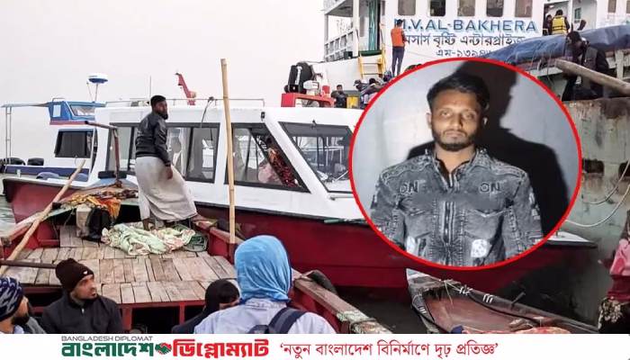 চাঁদপুরের হরিণা ফেরিঘাটের কাছে সারবোঝাই এমভি আল-বাখেরা জাহাজে সাত খুনের ঘটনায় গ্রেপ্তার হওয়া জাহাজের লস্কর আকাশ মণ্ডল ওরফে ইরফানকে (২৫)