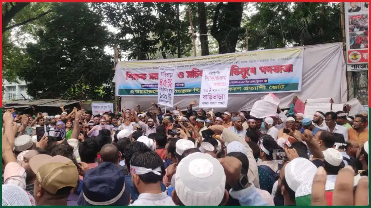 দাবি আদায়ে রাজপথে এমপিওভুক্ত শিক্ষকরা, যান চলাচল বন্ধ