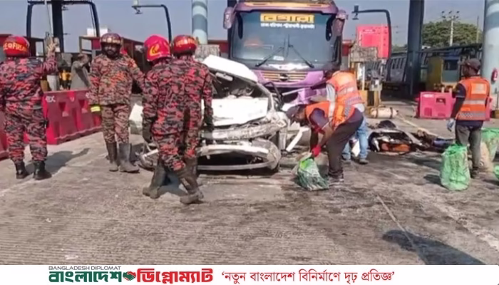 এক্সপ্রেসওয়ের টোল প্লাজায় প্রাইভেটকারে বাসের ধাক্কা, নিহত ৫
